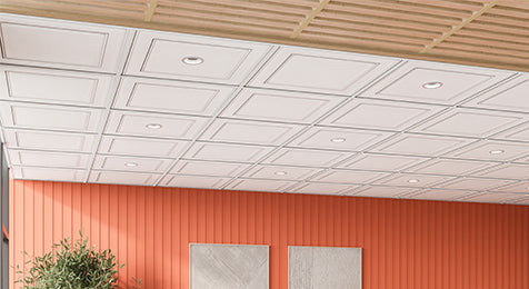 Discover our Mod Square vinyl drop-in ceiling tiles: cost-effective, easy-to-use, and impeccably designed. Constructed from our Feather-Light Series vinyl plastic, these 0.013 in. thick tiles boast unmatched quality. Despite their minimal weight, they offer exceptional durability and rigidity, thanks to their thermoformed design and the inherent strength of vinyl. Enjoy easy installation and maintenance with these classic vinyl ceiling tiles.